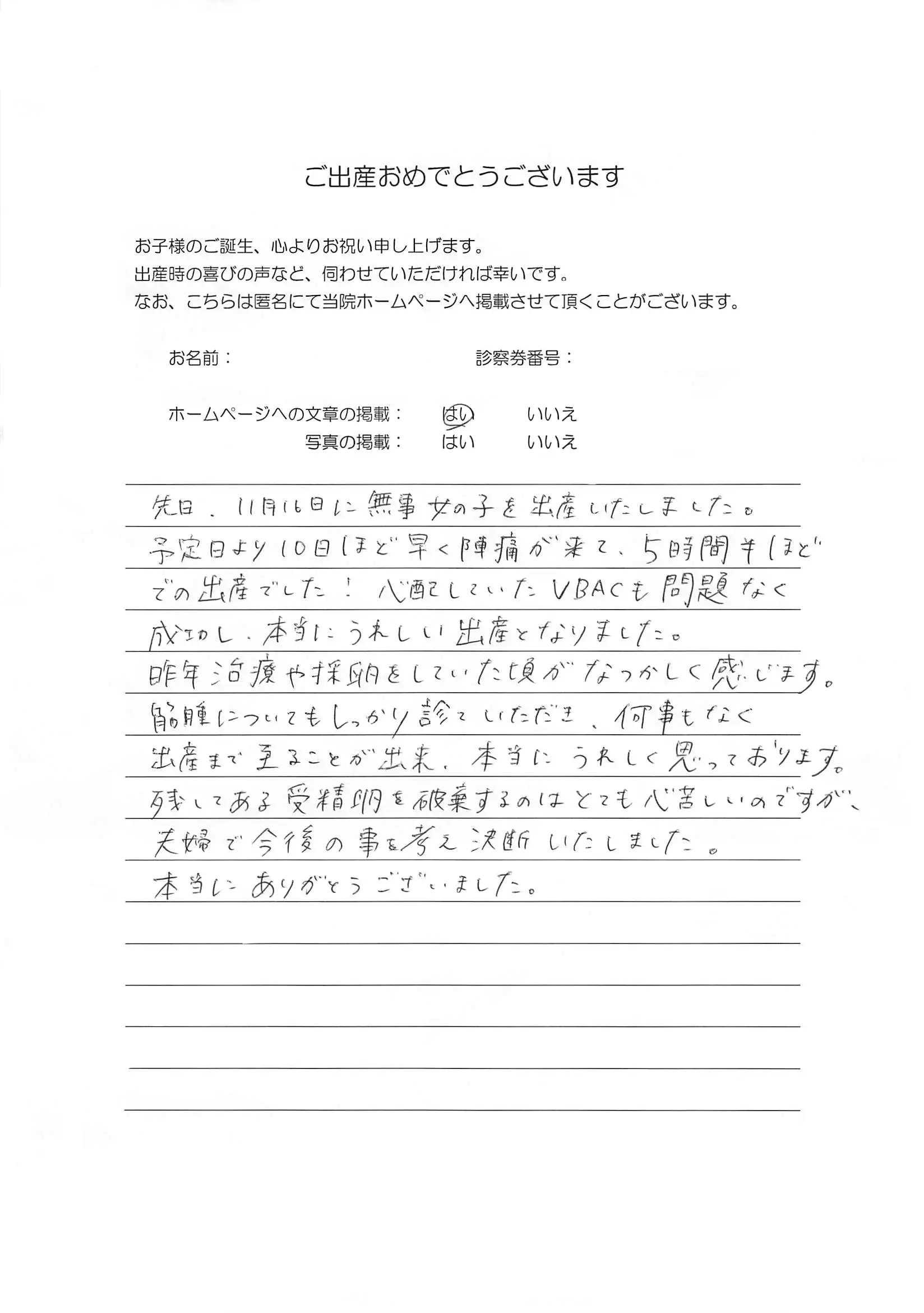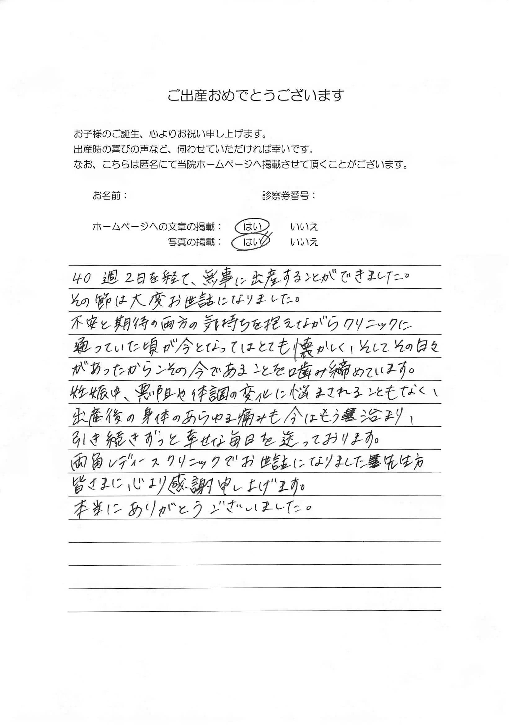 2025年12月にいただいたご出産された方のアンケートを掲載させていただきます。