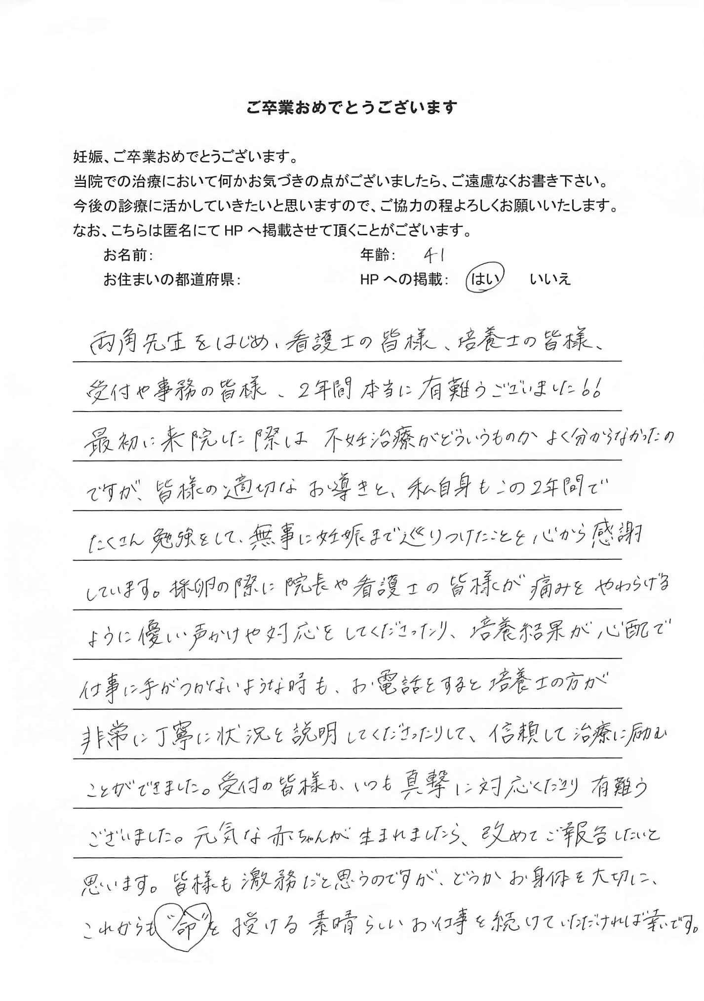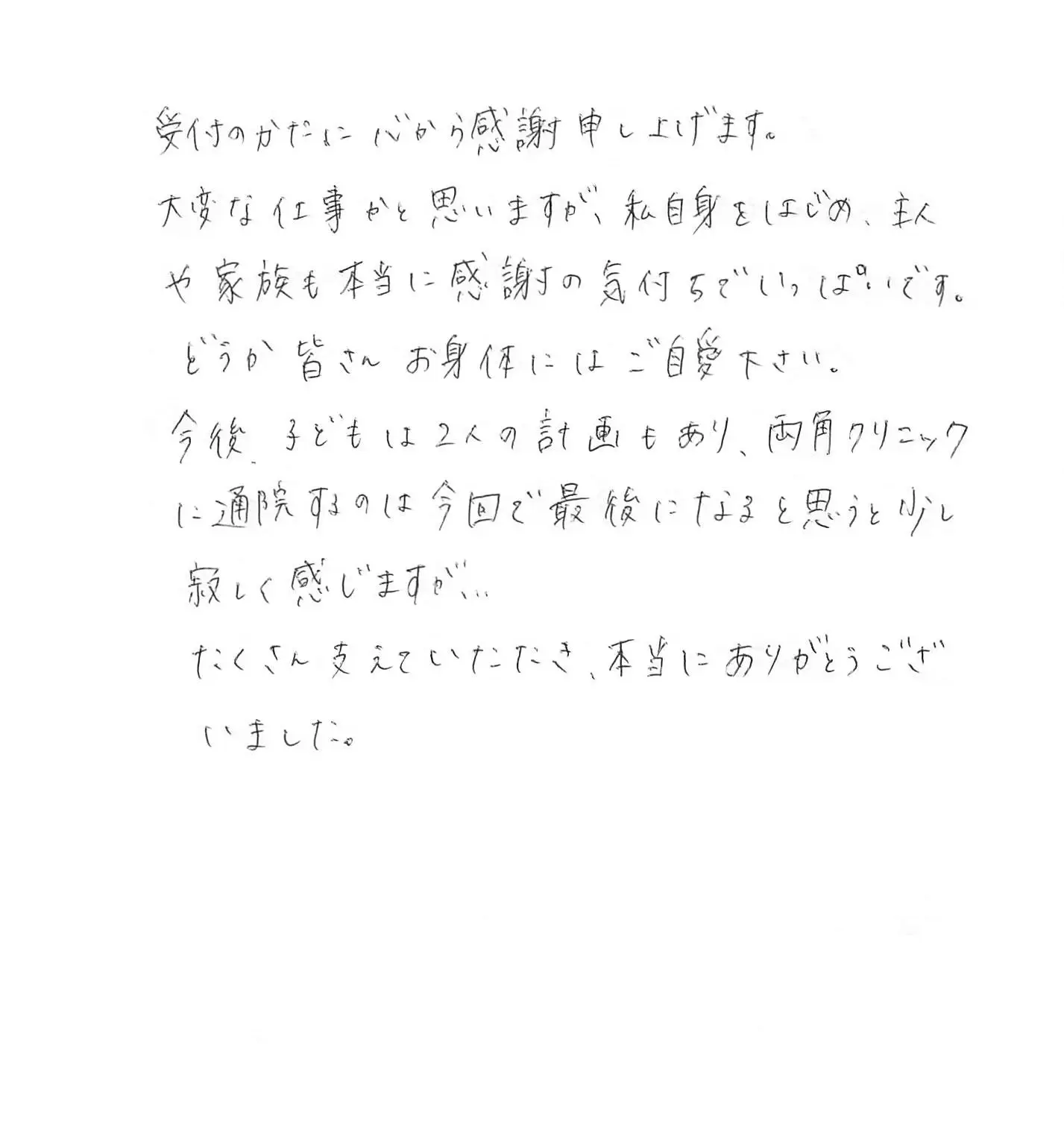 4.医師の皆さま、受付や培養士の皆さま全員が、とてもあたたかく治療もサポートしてくれたことが本当にうれしかったです