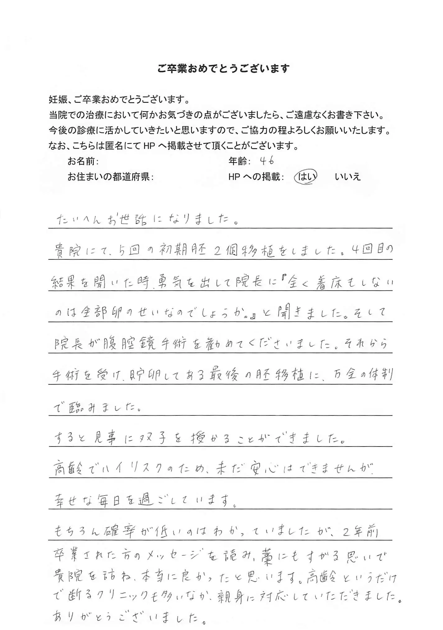 8.確率が低いのはわかっていましたが、2年前卒業された方からのメッセージを読み、藁にもすがる思いで貴院を訪ね、本当に良かったと思います。
