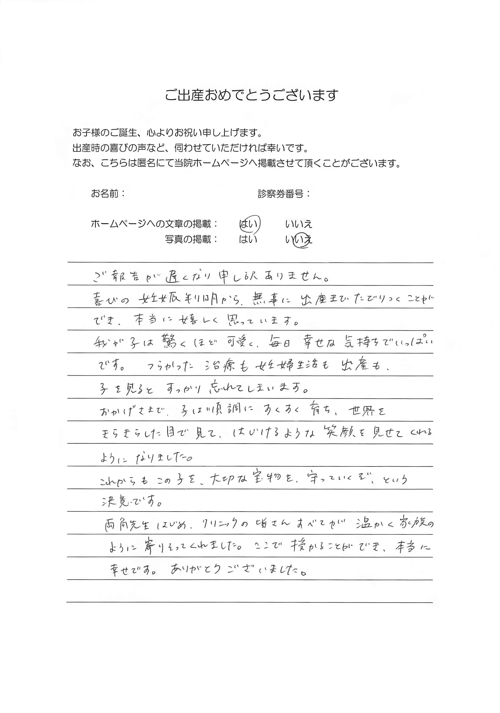 2026年1月にいただいたご出産された方のアンケートを掲載させていただきます。
