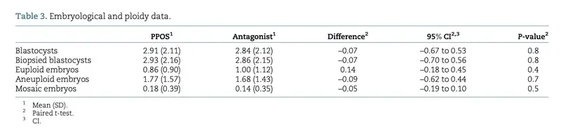 Table 3でも、Euploid胚数に有意差は認められていません。